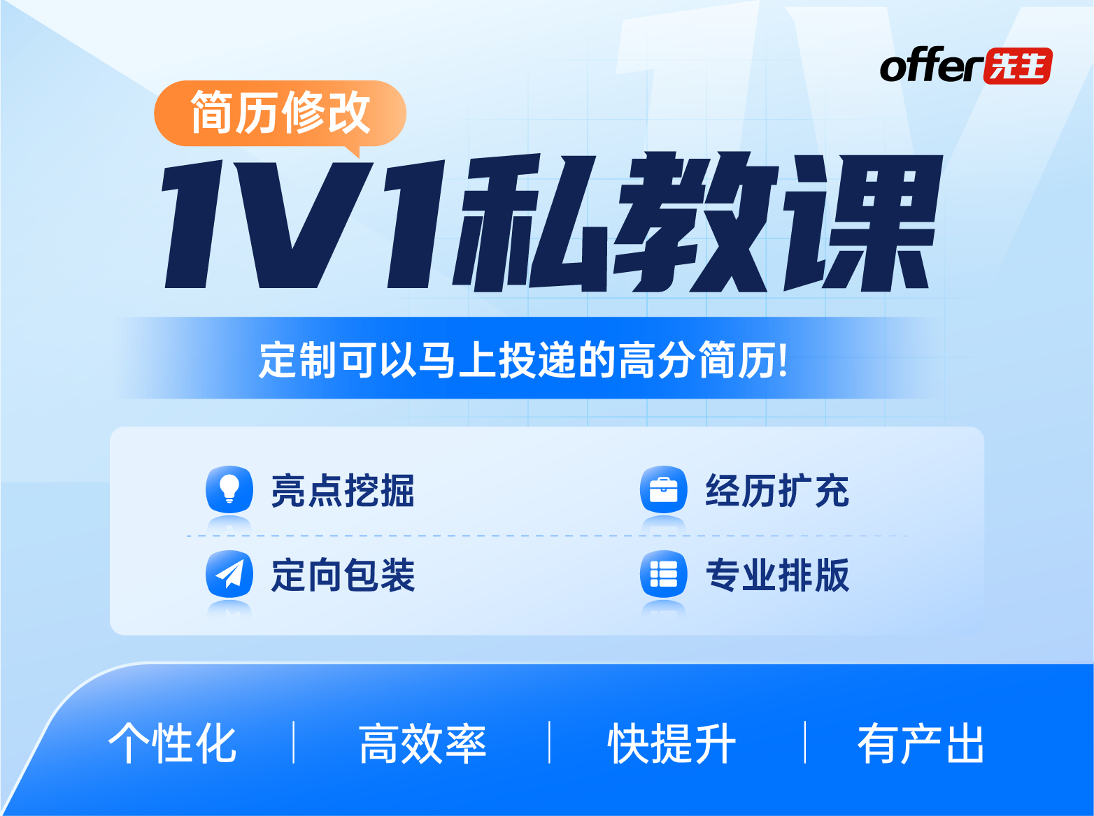 一对一深度挖掘你的优势/短板/亮点,帮你找到求职方向,不迷茫。校招+社招均适合,限时优惠!