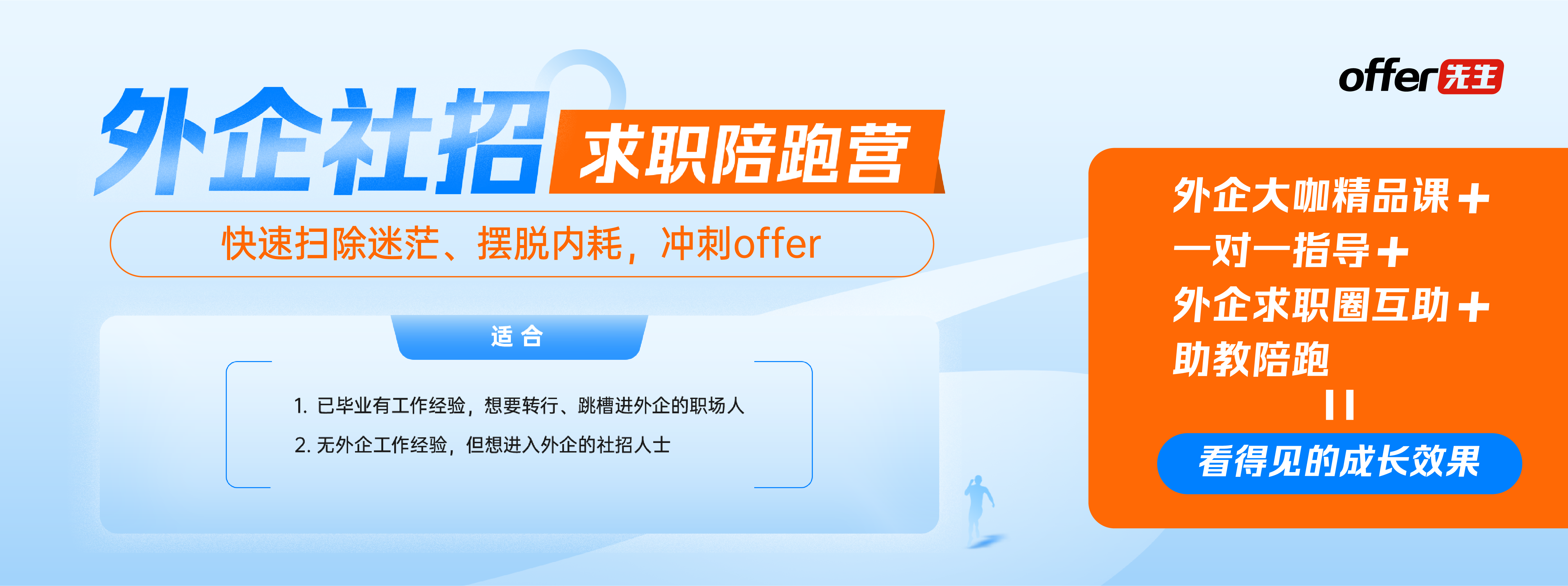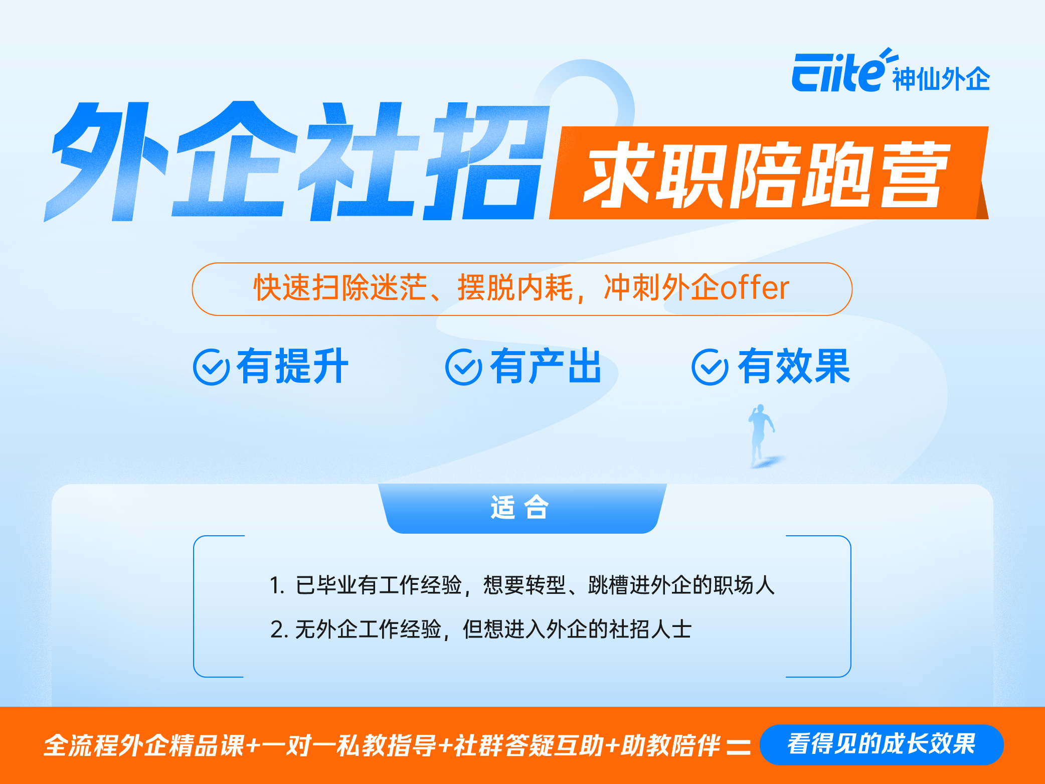 🔥优惠价只有最近才有!小班陪跑+1V1定向拔高+外企求职全流程精品课+半年信息推送服务,一门课搞定外企求职~